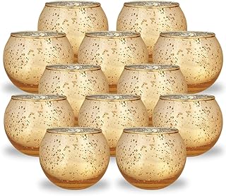 (12) - Just Artefacts Round Mercury Glass Votive Candle Holders 5.1cm H Speckled Gold (Set of 12) - Mercury Glass Votive Candle Holders for Weddings and Home Decor
