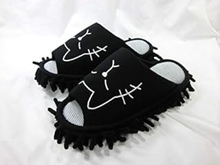 モップスリッパ 【ネコ柄(ブラック)BK】お掃除スリッパ 室内履き ルームシューズ マイクロファイバー 猫 ねこキャラクター 洗える