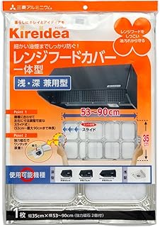 三菱アルミニウム Kireidea レンジフードカバー 浅型・深型 兼用型 一体型 幅35cm×横53cm~90cm 汚れ防止 細かい油煙までしっかり防ぐ ホワイト 75209