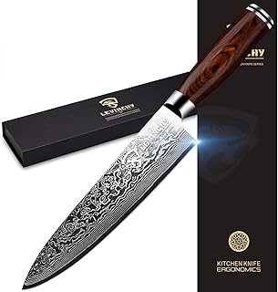 LEVINCHY Damascus Chef's Knife 8 inch Professional Japanese Damascus Stainless Steel Kitchen Knife Razor Sharp, Superb Edge Retention, Stain & Corrosion Resistant Ergonomic Non-slip KAPPA Handle