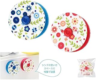 スポンジ 吸盤&スポンジ 花柄スポンジ 2個セット (青・赤) キッチンスポンジ 台所スポンジ 掃除スポンジ お皿 鍋 調理器具用