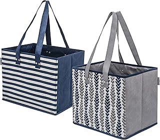 Planet E Reusable Grocery Shopping Bags – Large折りたたみボックスwith Reinforced Bottomsリサイクルプラスチック製(パックof 3 ) 2 Pack H1286_PRS2_AST