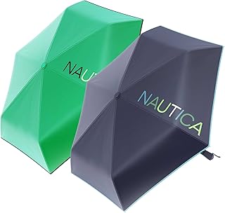 2-Pack Nautica Umbrella for Travel - Auto Open & Close Compact, Lightweight & Folding - Best Windproof Umbrellas for Rain, Sun & Wind Protection, Small, Automatic & Collapsible in Black, Navy & Green
