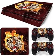 ZOOMHITSKINS PS4 スリムスキン サファリ動物園 炎 赤い炎 タイガーキング 動物 危険なジャングル ホット、丈夫、気泡が入りません グースフリー コントローラースキン 2枚セット 1コンソールスキン 米国製