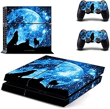 ZOOMHITSKINS PS4 コンソール&コントローラースキン ブラック ウルフ スカイムーン ブルーデバースター ナイトアニマル ローンハウル 丈夫 気泡なし グースフリー コンソールスキン1枚 コントローラースキン2枚 米国製