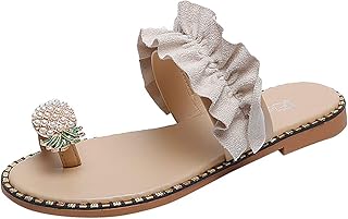 doerwye サンダル 可愛い パイナップル パール フリル ボヘミア風 ビーチサンダル 美脚 軽量 ファッション シューズ レディース オープントゥ ぺたんこ カジュアル 疲れない 大きいサイズ 春夏 滑り止め スリッパ
