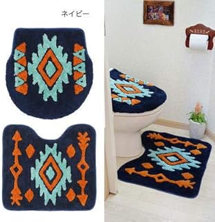 【ネイビー】○o。ハワイアン オルテガ ネイティブ ふかふかトイレセット 足元マット 蓋カバー 洗浄 普通 トイレマット ハワイアン雑貨・ハワイアンインテリア 西海岸 ビーチハウス カリフォルニア風o○