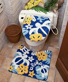 【BLUE】○o。ハワイアン ホヌ ハイビスカス トイレマット&カバーセット 普通タイプ 洗浄タイプ【ハワイアン雑貨】【ハワイアンインテリア】【便座カバー】マリン カリフォルニア スタイル トイレセット 西海岸 海亀。o○