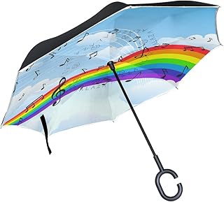 AOMOKI 逆さ傘 逆折り式傘 逆傘 長傘 日傘 晴雨兼用 梅雨対策 UVカット 耐強風 C型 二重構造 男女兼用 虹 虹色 音楽