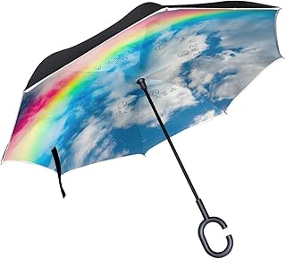 AOMOKI 逆さ傘 逆傘 長傘 日傘 逆折り式傘 晴雨兼用 梅雨対策 UVカット 耐強風 C型 二重構造 車用 男女兼用 虹 空 雲