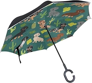 逆さ傘 逆傘 長傘 日傘 逆折り式傘 晴雨兼用 梅雨対策 UVカット 耐強風 C型 二重構造 車用 男女兼用 かわいいダックスフンドの犬