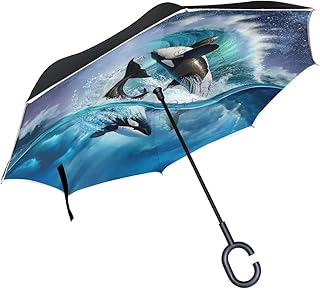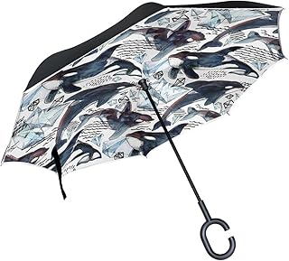 逆さ傘 逆傘 長傘 日傘 逆折り式傘 晴雨兼用 梅雨対策 UVカット 耐強風 C型 二重構造 車用 男女兼用 シャチ アート