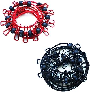 物干しロープ 旅行用 洗濯ロープ 室内&アウトドア キャンプ 12個クリップ付き 滑り止め 部屋干し 伸縮 携帯便利 梅雨(2個セット・ブラック&赤)