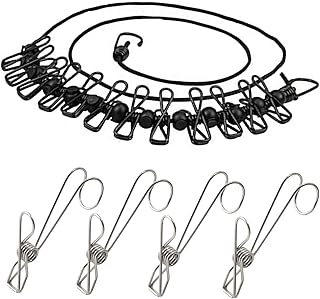 YOYIMONO 洗濯物干し 室内物干し 洗濯ロープ 12個クリップタイプ 室内 旅行 キャンプ 最適便利グッズ 付属品 フック付き洗濯バサミ ステンレス製 4つ付き (ブラック)