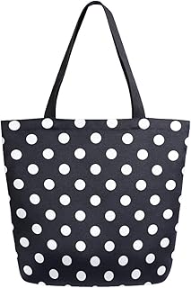 ZZXXB ブラックとホワイト 水玉模様 再利用可能な食料品ショッピングバッグ 高耐久 キャンバストートバッグ L 折りたたみ可能 洗濯可能 ハンドバッグ ショルダー 女性用