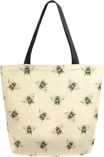 ZZXXB Bee 再利用可能な食料品ショッピングバッグ 高耐久 キャンバストートバッグ L 折りたたみ可能 洗濯可能 ハンドバッグ ショルダー 女性用