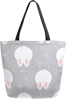 ZZXXB うさぎ お尻 再利用可能な食料品ショッピングバッグ 高耐久 キャンバストートバッグ L 折りたたみ可能 洗濯可能 ハンドバッグ ショルダー 女性用