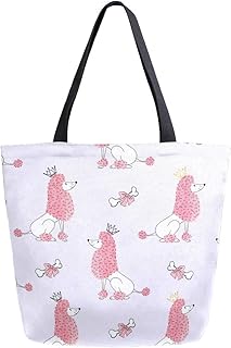 ZZXXB プードル プリンセス 再利用可能な食料品ショッピングバッグ 高耐久 キャンバストートバッグ L 折りたたみ可能 洗濯可能 ハンドバッグ ショルダー 女性用