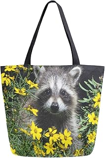 ZZXXB アライグマ フローラル 再利用可能な食料品ショッピングバッグ 高耐久 キャンバストートバッグ L 折りたたみ可能 洗濯可能 ハンドバッグ ショルダー 女性用