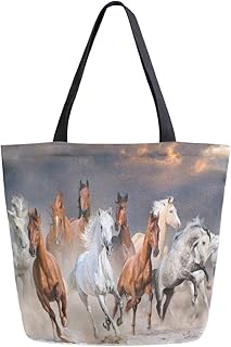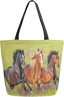 ZZXXB ランニングホース 再利用可能な食料品ショッピングバッグ 高耐久 キャンバストートバッグ L 折りたたみ可能 洗濯可能 ハンドバッグ ショルダー 女性用