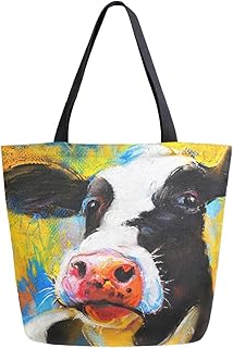 ZZXXB 牛 オイルプリント 再利用可能な食料品ショッピングバッグ 高耐久 キャンバストートバッグ L 折りたたみ可能 洗濯可能 ハンドバッグ ショルダー 女性用