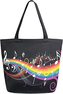 ZZXXB 音符 レインボー 再利用可能な食料品ショッピングバッグ 高耐久 キャンバストートバッグ L 折りたたみ可能 洗濯可能 ハンドバッグ ショルダー 女性用