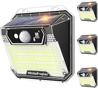 ホワイトポプラ ソーラーライト 屋外 148 LED モーションセンサー 屋外ライト 3つのオプションモード IP44 防水セキュリティライト 屋外 庭 ガーデン ゲート フェンス ポーチ ガレージ (4パック)