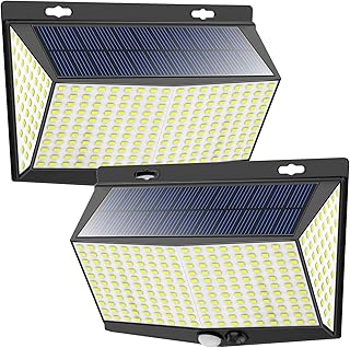 288 LED ソーラーライト アウトドア モーションセンサー 3つの照明モード 270°広角照明 IP65防水 ワイヤレス セキュリティ ソーラーパワー フラッドライト 屋外フェンス壁庭用 (6500K 2パック)