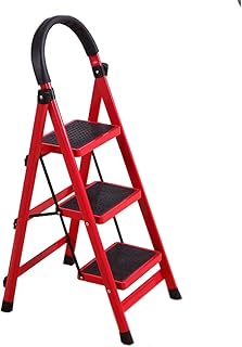 踏み台 脚立 ステップ台 手すり3段、成人用高齢者用折りたたみ式小型折りたたみ台所用脚立、金属、150kg (Color : Red, Size : 3 Step)