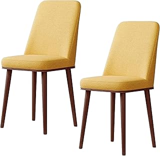 WYGK 2桁のダイニングチェアセット、寝室のバルコニーラウンジチェア防水布穀物レザーメタルフットキッチンチェア チェア (Color : Yellow, Size : Dark frame)