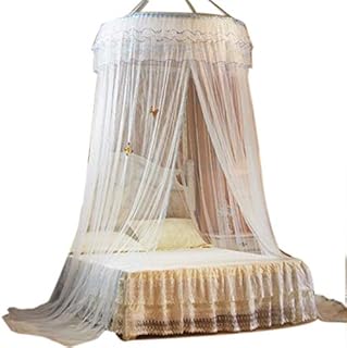 蚊帳 天蓋カーテン モスキートネット お姫様 オシャレ 円形蚊帳 吊り下げ 子供部屋 防虫防蚊 インテリア 装飾用 プリンセス ベッド 蚊帳 ス快適な安眠へ 取り付け簡単 (ホワイト)