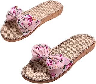 [LOOVOO] スリッパ 夏 レディースルームシューズ リネン亜麻 通気 室内履き 海辺シューズ 蝶結び 来客用 可愛い 静音 編み物 おしゃれ キレイ目 軽量