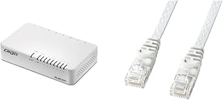 【セット買い】エレコム スイッチングハブ ギガビット対応 8ポート プラスチック マグネット付 電源外付モデル ホワイト EHC-G08PA2-JW & サンワサプライ LANケーブル CAT6 フラットタイプ 1Gbps/250MHz ギガビット イーサネットケーブル RJ45コネクタ ツメ折れ防止 (5m) ホワイト LA-FL6-05W
