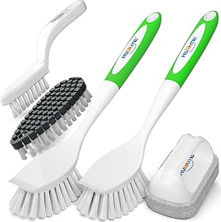 Holikme (ホリックミー) キッチンクリーニングブラシセット 5本パック クリーニング用皿ブラシ&キッチンスクラブブラシ&折り曲げ可能なクリーニングブラシ&溝・隙間ブラシ&研磨パッド (鍋/フライパン/キッチンシンク用) グリーン