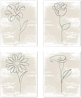 ボーホー ミニマリスト フラワーライン アート タン ニュートラル 水彩 抽象 ファームハウス ウォールアート ポスター ホーム リビング ルーム デコレーション シンプル 美しい ローズ デイジー 野生の花 ピクチャープリント デコレーション キッチン 寝室