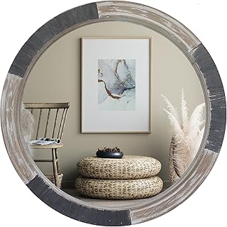 BrightonLiving 大きな素朴な円形木製フレーム 壁掛けミラー リビング バスルーム ベッドルーム ダイニングルーム センターピース デコレーション 24インチ