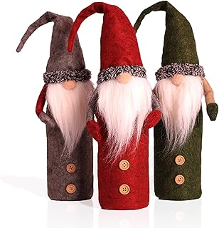 クリスマス ノーム ワインボトルカバー 3パック ホリデー ホーム クリスマス デコレーション ギフト ワイン愛好家 ギフトバッグ ハンドメイド 引き紐付き クリスマス ワインボトル トッパー