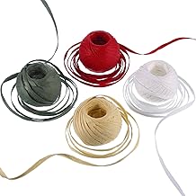 Tatuo 4ロール 656フィート クリスマス ラフィア ペーパー リボン ストリング ナチュラル レッド グリーン ホワイト クリスマス ギフト ラッピング 梱包 クリスマス デコレーション 用品