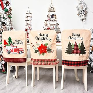 Jhua クリスマスバックチェアカバー 3点セット ダイニングルーム 椅子カバー クリスマス リネン ダイニングチェア バックカバー クリスマス ツリー フラワー ディナーチェアカバー クリスマス 宴会 キッチン ダイニングルーム 装飾