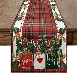 Artoid Mode 水彩 ヒイラギの花瓶 平和 ジョイ クリスマス テーブルランナー 季節 冬 クリスマス ホリデー キッチン ダイニングテーブル装飾 屋内 屋外 ホームパーティー装飾 13 x 72インチ