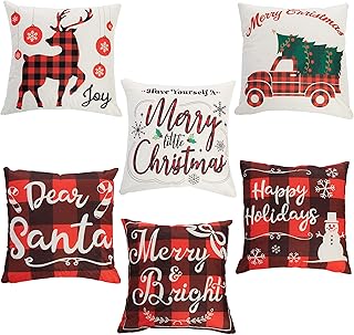 JOYIN クリスマス バッファロー 格子柄 枕カバー 素朴な農家デザイン (6パック) 18x18インチ クリスマス スロー ピローケース ソファ カウチ 寝室 パティオシート クリスマス 冬 ホリデーデコレーション