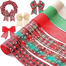 6ロール 30ヤード クリスマス ワイヤー入りエッジ リボン バッファロー 格子縞 ファブリック リボン クリスマス スノーフレーク 格子縞 リボン チェック ラッピング リボン クリスマス ツリー リース クラフト デコレーション (エレガントなスタイル)
