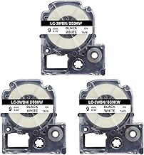 互換 テプラ テープ 9mm 白地黒文字 SS9K 3個 キングジム テプラ カートリッジ,カートリッジ ラベルライター SR250 SR150 SR170 SR-GL2 など用, 長さ8m