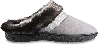 isotoner レディース マイクロスエード フェイクファー インドア/アウトドアフードバックスリッパ