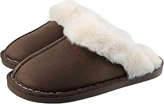 ULTRAIDEAS レディース 快適 マイクロスエード 低反発素材 スリッパ ノンスキッドハウスシューズ フェイクファー襟付き