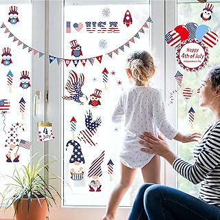 MOSEHOOT 7月4日 ノーム 愛国的 ウィンドウステッカー 独立記念日 夏 ウィンドウステッカー 140枚 取り外し可能 両面 ホーム オフィス 学校 8枚
