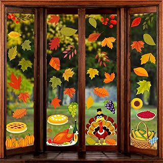 Winlyn 8枚 158枚 秋の葉 ウィンドウステッカー 詰め合わせ メープルオークの葉 どんぐり ウィンドウステッカー 秋 感謝祭 ハロウィン 季節 休日 ガラス ウィンドウデコレーション